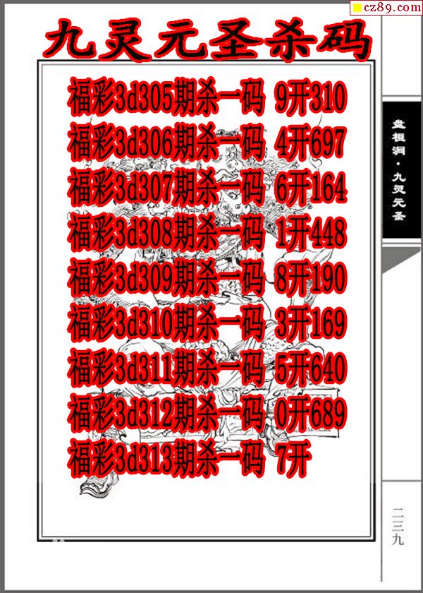 > 九灵元圣杀码2025313期3d图谜(原创)