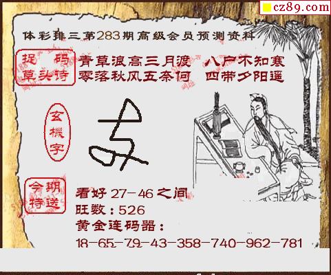 首页 > 排列3图谜 > 体彩P3283期 5188图谜(2025特一级会员版)
